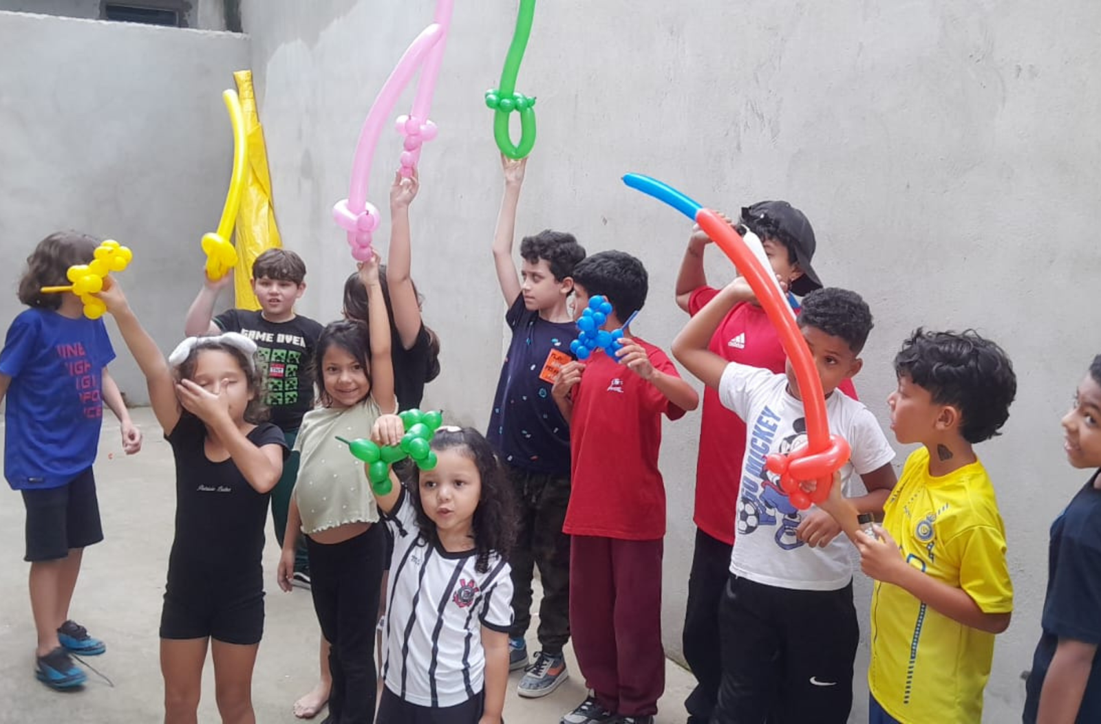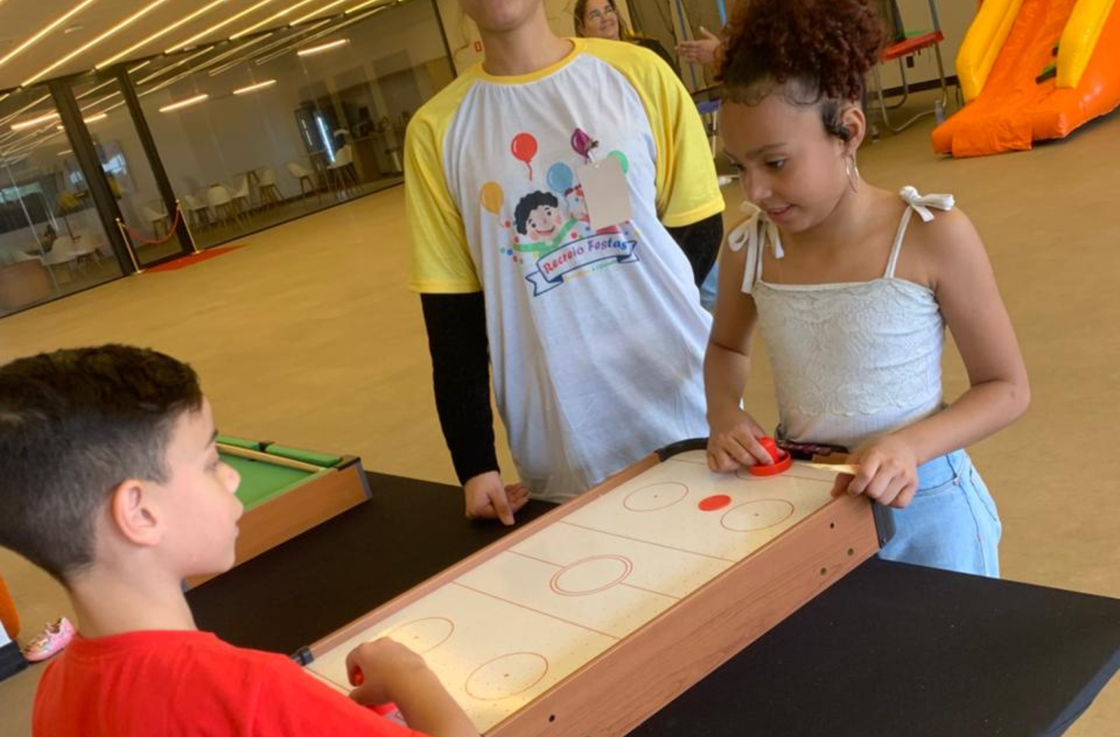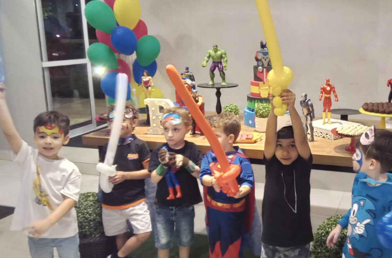 A recreação é o fio que conduz a festa do início ao fim. Com brincadeiras, jogos recreativos e gincanas, mantemos as crianças entretidas de forma segura e organizada durante todo o evento. Atividades direcionadas por faixa etária, utilizando uma metodologia própria, validada em anos de experiência prática.