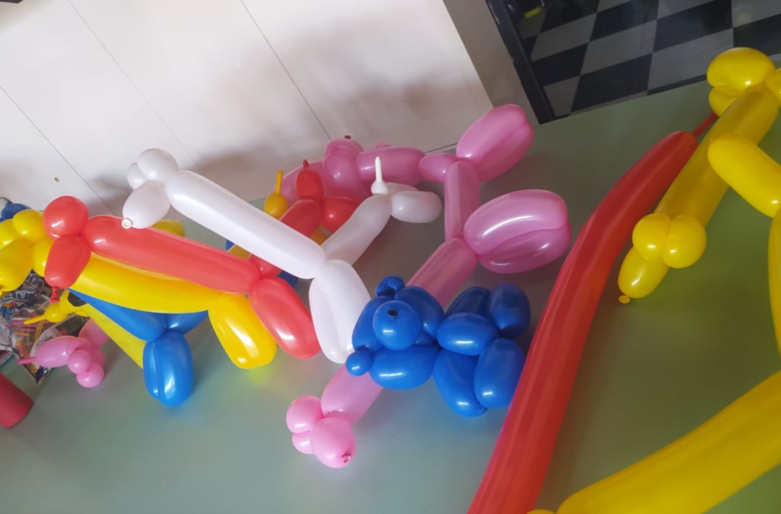 Escultor em Balões acompanha Carrinho profissional. Podemos transformar balões em Animais, Personagens, Cachorrinhos, Girafa, Crocodilo, Dinossauro, Espadas, Corações, Flor, Coração, Ratinho, Capacete, Borboletas, objetos e muito mais. Faremos as Esculturas que as crianças desejarem. Uma lida lembrança da festa.